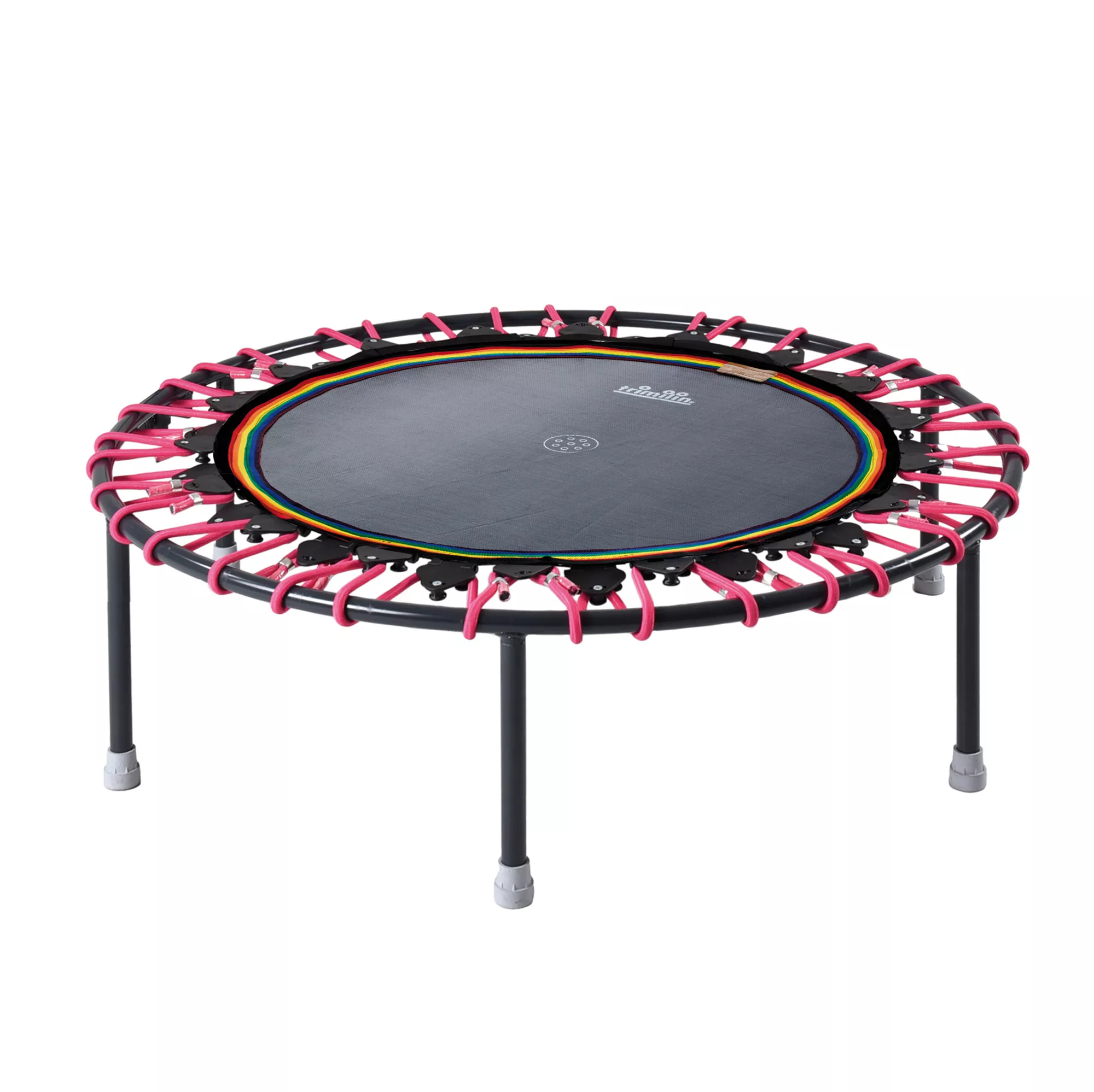 Mit der patentierten VARIO-Technik kann die Spannung des Gummikabel-Trampolins indivduell verändert werden. Gelenkschonende Federung für Ausdauer-, Cardio- und Fitnesstraining. Ohne Randbezug. Mit farbigen VARIO-Gummikabeln.